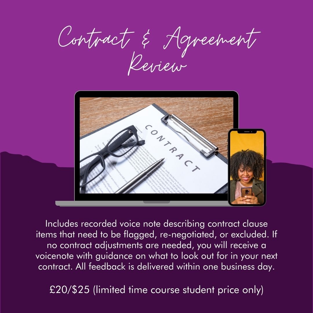Don't give away your intellectual property for free! Receive a personalized voicenote detailing contract clause items that need to be flagged, re-negotiated, or excluded. *Special offer for enrolled students only!*